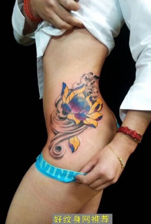 性感妖娆的腰部荷花纹身图腰部彩色荷花半甲纹_腰部纹身图案大全_纹身图吧