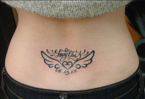 女生后腰上清新秀雅的翅膀纹身图腾图腾翅膀加_腰部纹身图案大全_纹身图吧