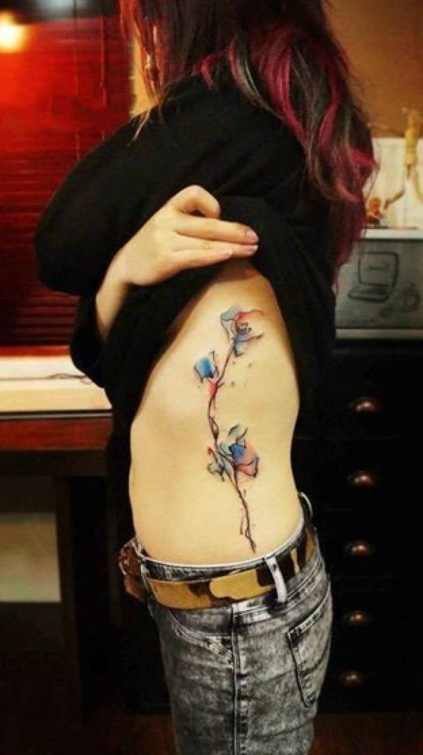 女生侧腰上妖娆的花枝彩绘纹身抽象花枝图案水_腰部纹身图案大全_纹身图吧