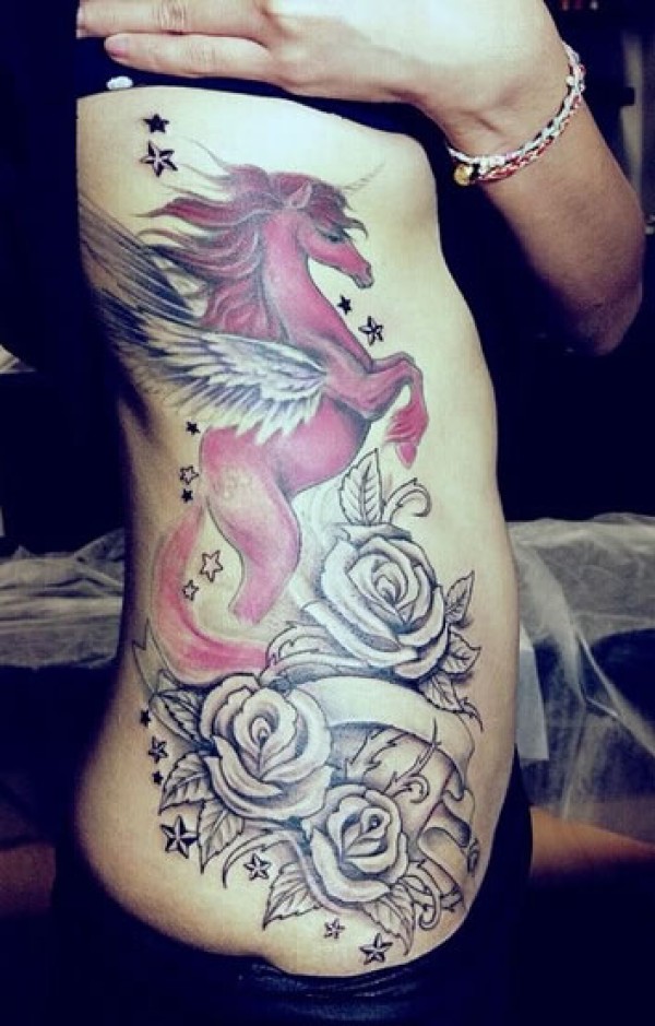 美女侧腰独角兽纹身_腰部纹身图案大全_纹身图吧