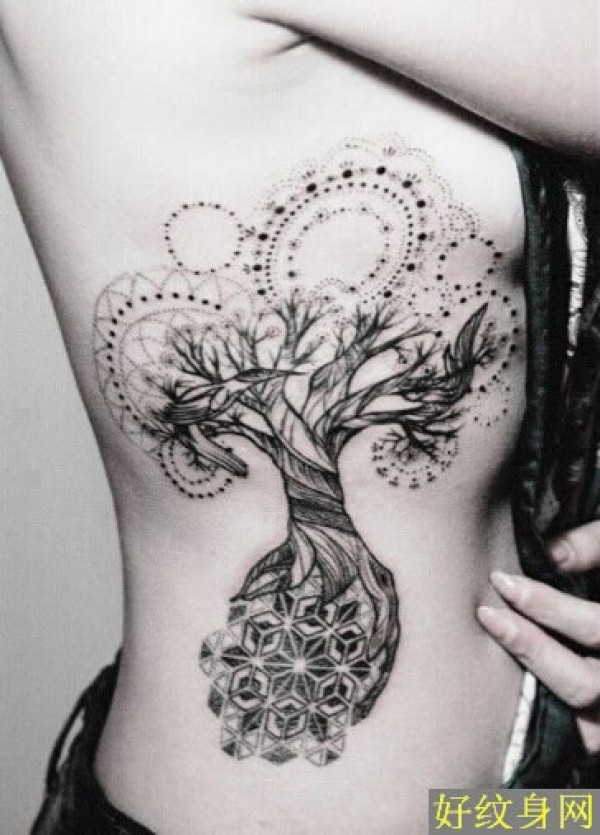 美女侧腰上的水晶树图案纹身图案精美的水晶树_腰部纹身图案大全_纹身图吧