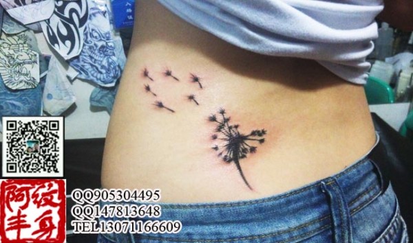女生腰部非常时尚的纹身图案推荐飘扬的蒲公英_腰部纹身图案大全_纹身图吧