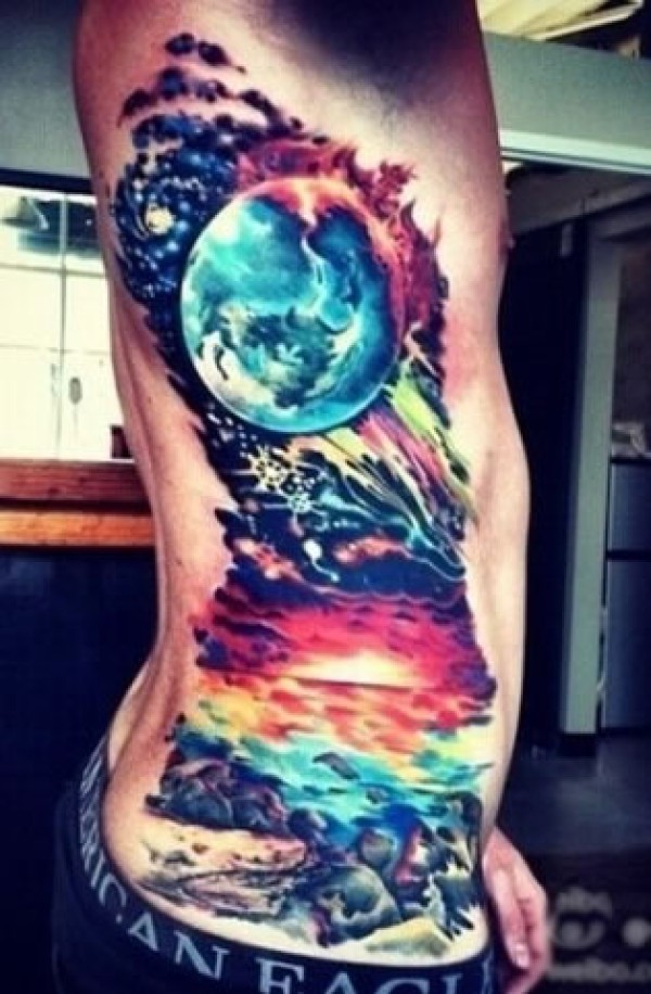 色彩绚烂的星空图案纹身如此漂亮的星空图案,_腰部纹身图案大全_纹身图吧