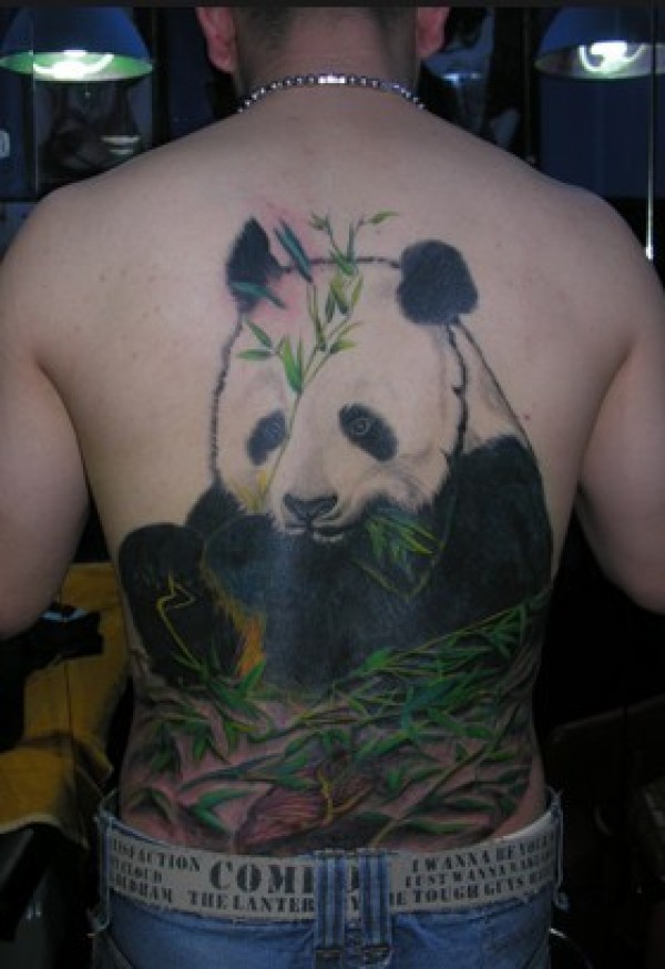 腰部熊猫图案黑白纹身吃竹子的熊猫图案纹身_腰部纹身图案大全_纹身图吧