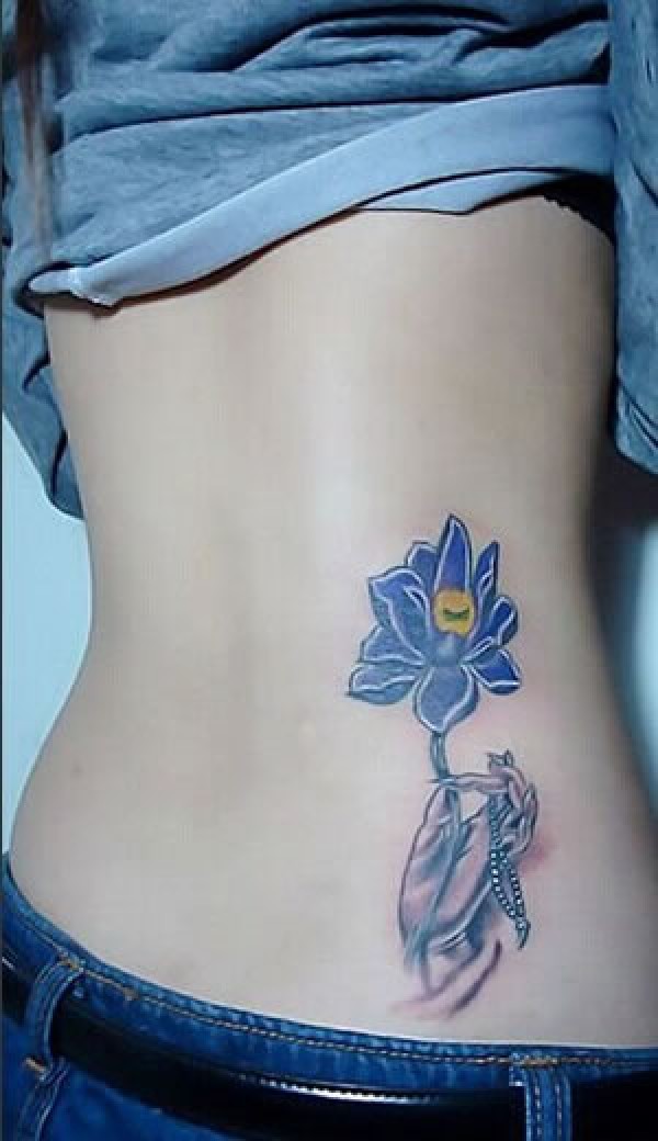美女腰部清新脱俗的佛手莲花纹身图案纹身图案_腰部纹身图案大全_纹身图吧