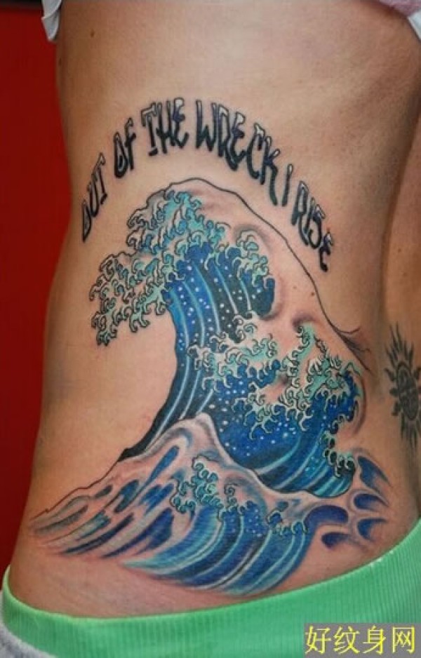 腰部来势汹汹的海浪纹身图案波涛汹涌的海浪加_腰部纹身图案大全_纹身图吧