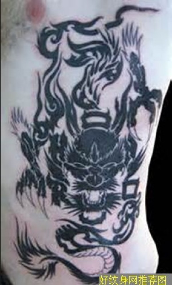 腰间很有创意的神兽骨架纹身图案神龙骨架图腾_腰部纹身图案大全_纹身图吧