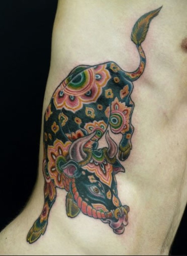 牛纹身,腰部传统花牛和牛头纹身图案腰间传统_腰部纹身图案大全_纹身图吧