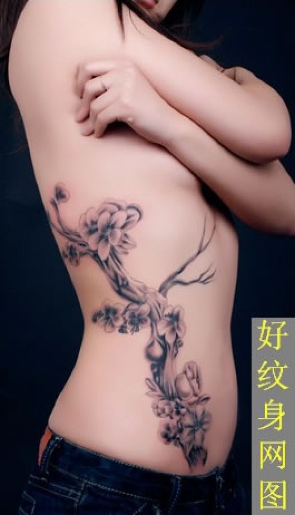 美女侧腰梅花纹身_腰部纹身图案大全_纹身图吧