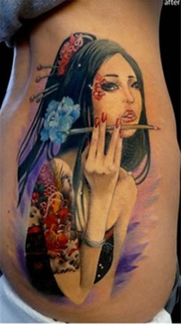 腰部绝代风华的古典美女图案纹身有一种画叫做_腰部纹身图案大全_纹身图吧
