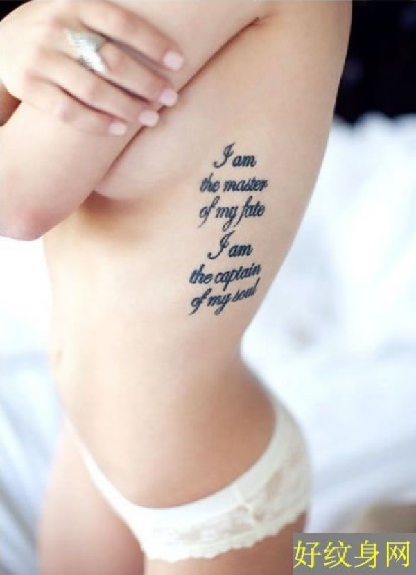 美女侧腰上感性的字母纹身图案纹身就如一道美_腰部纹身图案大全_纹身图吧