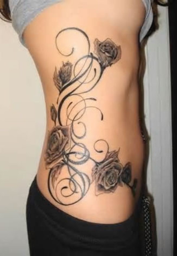 彩色花藤与素色花藤纹身效果对比侧腰上淡雅的_腰部纹身图案大全_纹身图吧