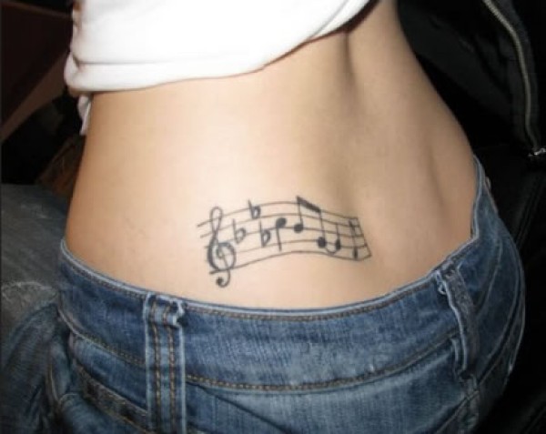 在美女腰部跳动的音符纹身图案这样款式的音符_腰部纹身图案大全_纹身图吧