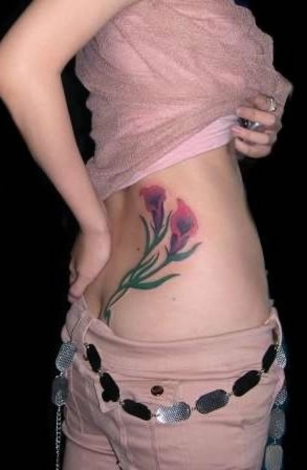 美女腰部漂亮的郁金香花纹身图色彩艳丽的郁金_腰部纹身图案大全_纹身图吧
