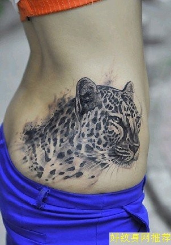 腰部杀气腾腾的豹子纹身图奔跑着扑捉猎物的金_腰部纹身图案大全_纹身图吧
