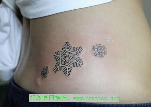 美女腰部晶莹剔透的雪花图案纹身很漂亮的雪花_腰部纹身图案大全_纹身图吧