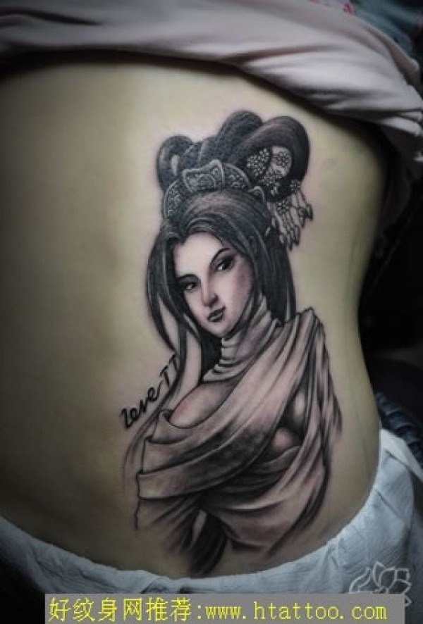 腰侧上的古典美女纹身图案纹身图案中的人物很_腰部纹身图案大全_纹身图吧