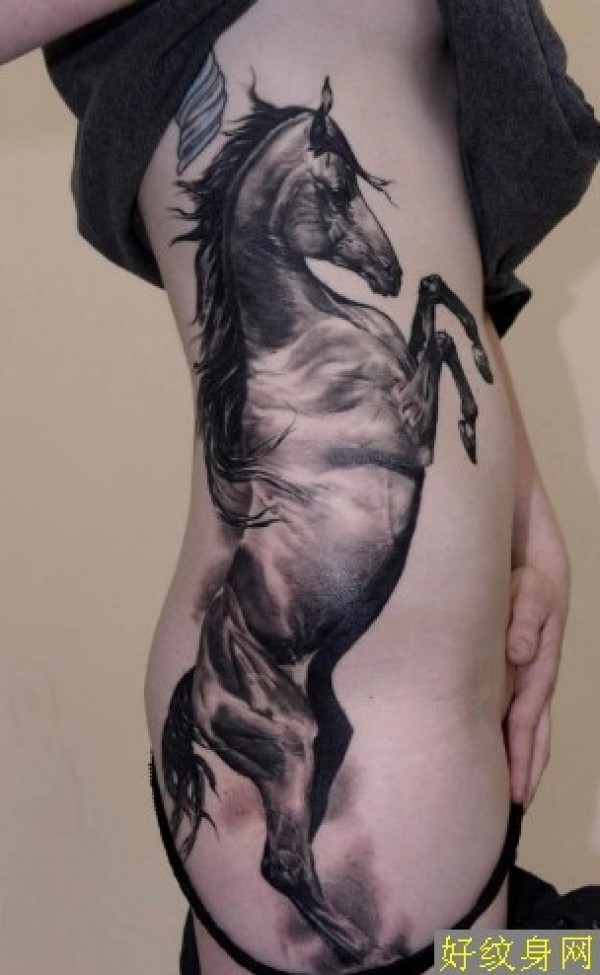 腰部豪放奔腾的骏马纹身图案腰部立起的素色骏_腰部纹身图案大全_纹身图吧