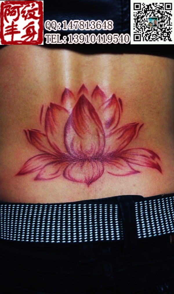 后腰上的暗红色荷花纹身图案丰台纹身馆最新荷_腰部纹身图案大全_纹身图吧