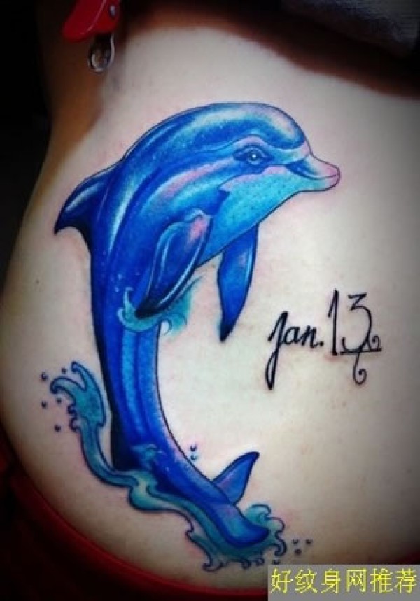 腰部蓝色的海豚纹身图海豚纹身图案,海豚是海_腰部纹身图案大全_纹身图吧