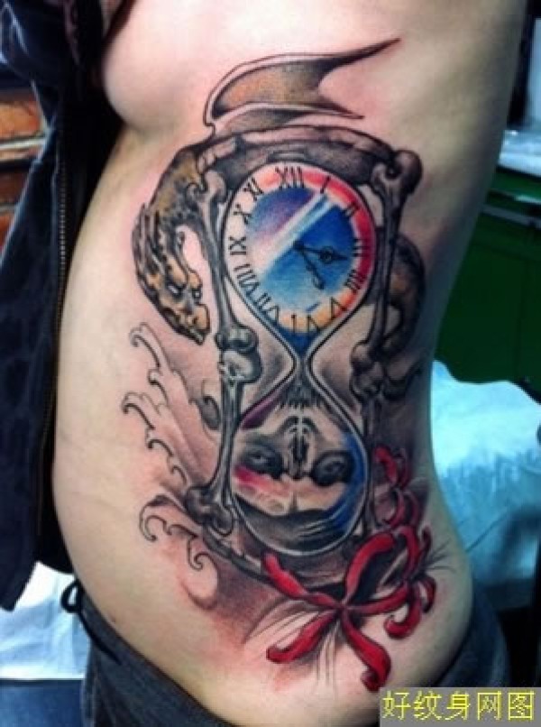 女生侧腰上彩色的沙漏图案纹身选择这款沙漏图_腰部纹身图案大全_纹身图吧