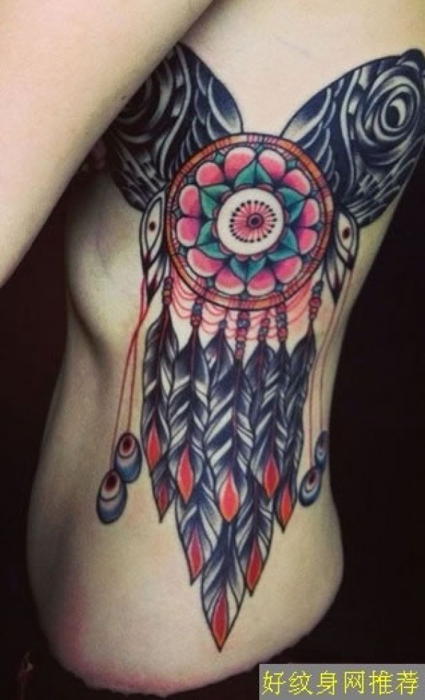 侧腰上羽毛组成的纹身图案由鱼头和羽毛组成的_腰部纹身图案大全_纹身图吧