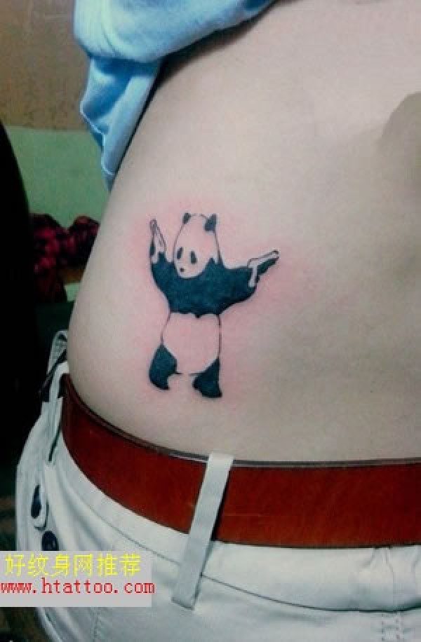 腰部黑白色功夫熊猫纹身图案好呆好可爱的熊猫_腰部纹身图案大全_纹身图吧