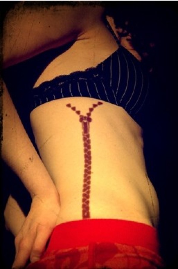 女生侧腰上极具创意的拉链图案纹身不知道选择_腰部纹身图案大全_纹身图吧