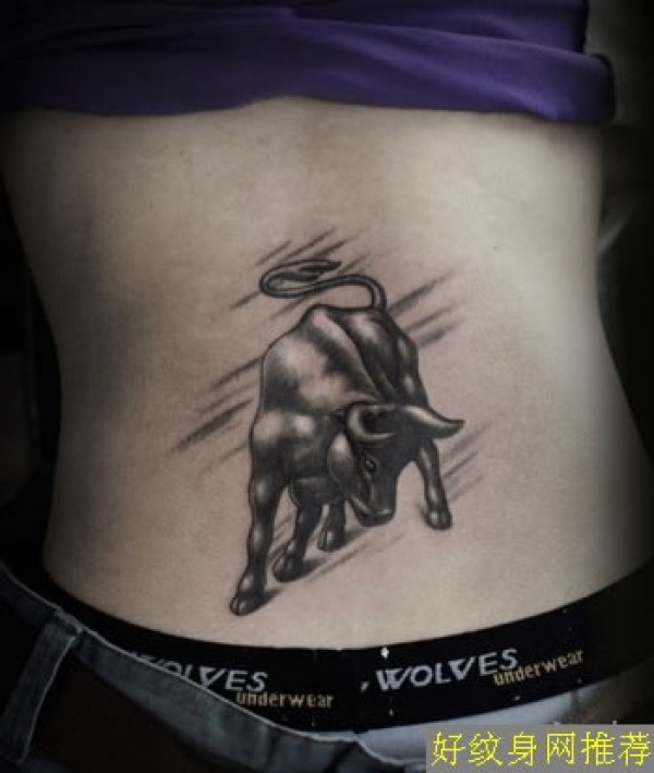 腰部健壮的蛮牛图案纹身这蛮牛纹身就是力量的_腰部纹身图案大全_纹身图吧