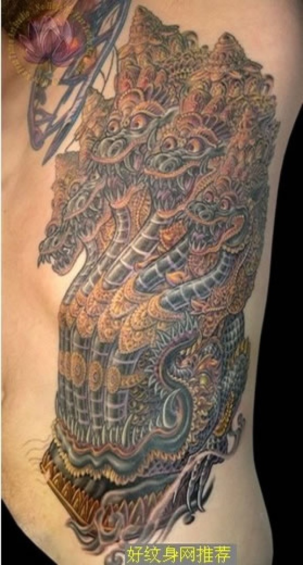 侧腰上的金色多头龙纹身图案腰部多头龙装饰品_腰部纹身图案大全_纹身图吧