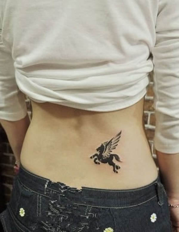 女生腰部展翅的天马图腾纹身展翅高飞的天马图_腰部纹身图案大全_纹身图吧