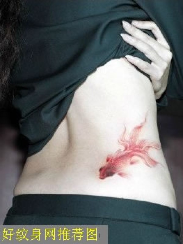 女生腰部彩色的金鱼图案纹身女生腰部栩栩如生_腰部纹身图案大全_纹身图吧