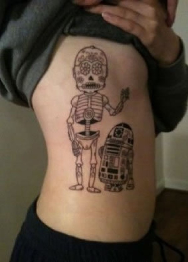 腰部简单的线条机器人图案纹身外星来访的机器_腰部纹身图案大全_纹身图吧