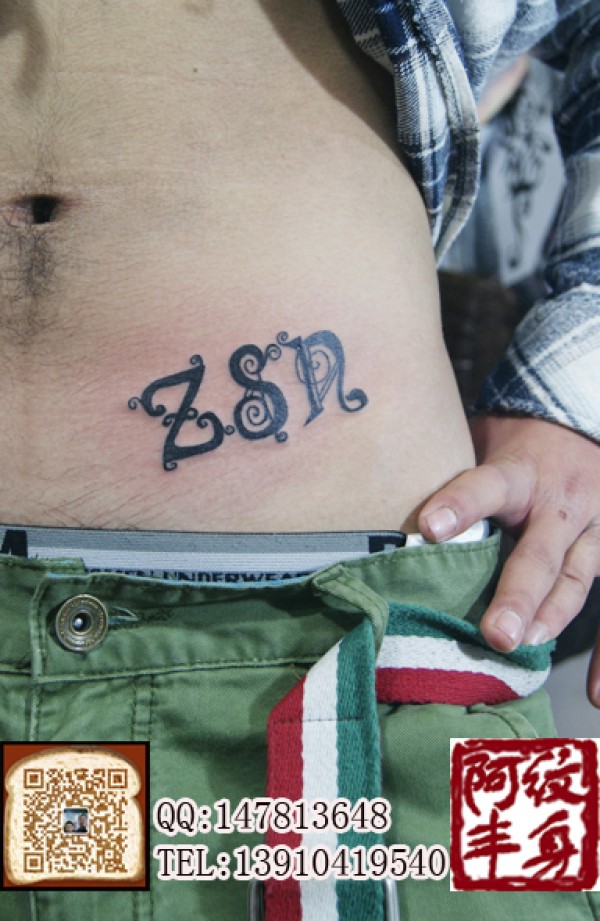 腰部音符形态的字母纹身图这样的英文字母图案_腰部纹身图案大全_纹身图吧