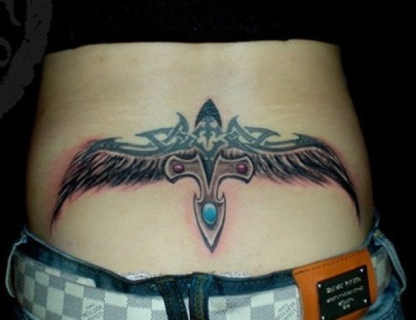 腰部对称打翅膀图案纹身非常精致的翅膀纹身图_腰部纹身图案大全_纹身图吧