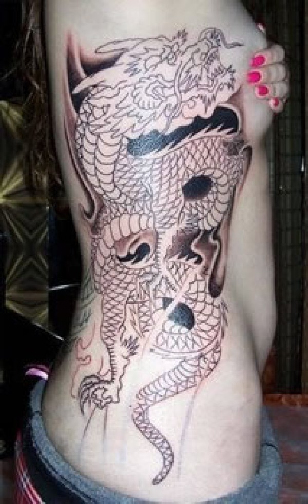 侧腰上的神龙纹身图女生侧腰上的简化龙纹身图_腰部纹身图案大全_纹身图吧