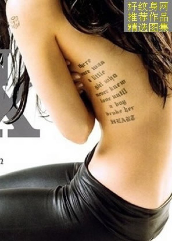 纤细侧腰上的英文字母纹身图这样的纹身只能给_腰部纹身图案大全_纹身图吧