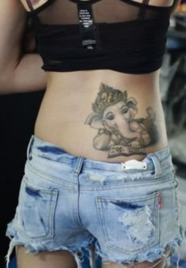 细腰女生腰部的素色象神纹身图这款象神纹身怎_腰部纹身图案大全_纹身图吧