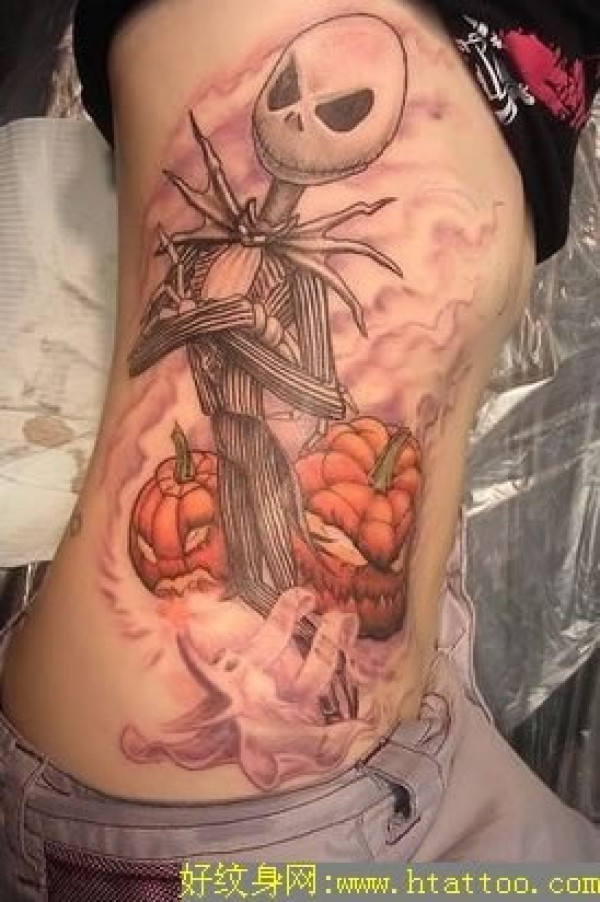 腰部万圣节主题纹身图案蓝瓜灯与幽灵等图案组_腰部纹身图案大全_纹身图吧