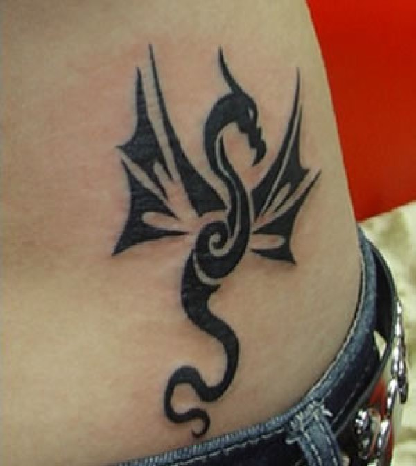 腰部黑色翼龙图腾纹身图翼龙展翅图案图腾纹身_腰部纹身图案大全_纹身图吧