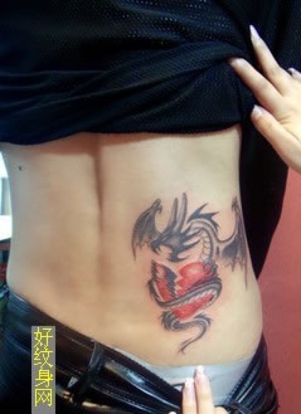 女生腰部火系翼龙纹身图案盘绕爱心图案的翼龙_腰部纹身图案大全_纹身图吧