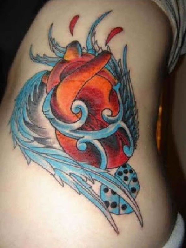 女生腰部骰子纹身图带翅膀的骰子纹身图案_腰部纹身图案大全_纹身图吧