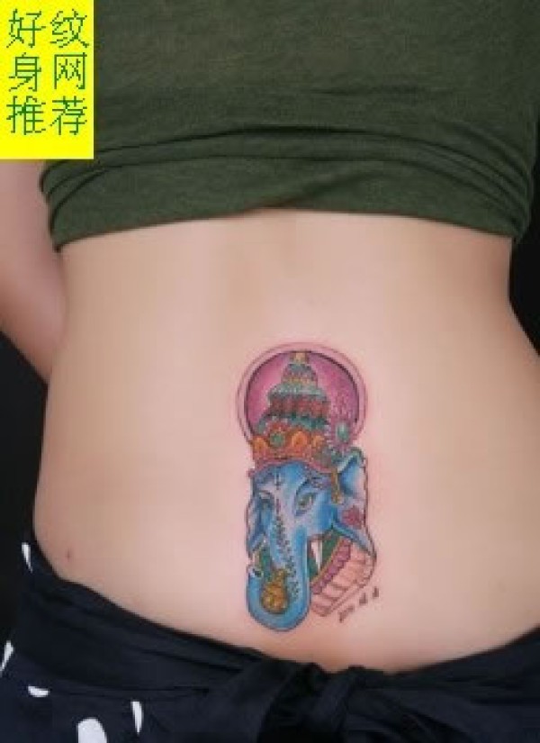 腰部彩绘象神图案纹身蓝色象神图案纹身_腰部纹身图案大全_纹身图吧