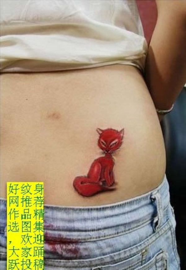 女生腰部红色的火狐纹身图红色火狐纹身,性感_腰部纹身图案大全_纹身图吧