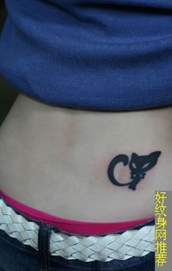 女生腰部黑色的猫咪图腾纹身这款猫咪图腾纹身_腰部纹身图案大全_纹身图吧