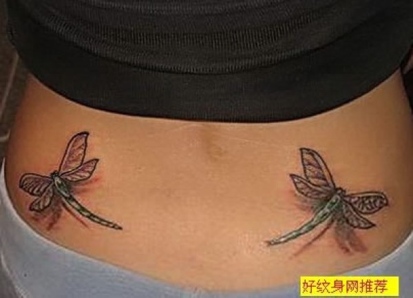 女生腰部蜻蜓纹身图腰部相对的蜻蜓图案纹身_腰部纹身图案大全_纹身图吧
