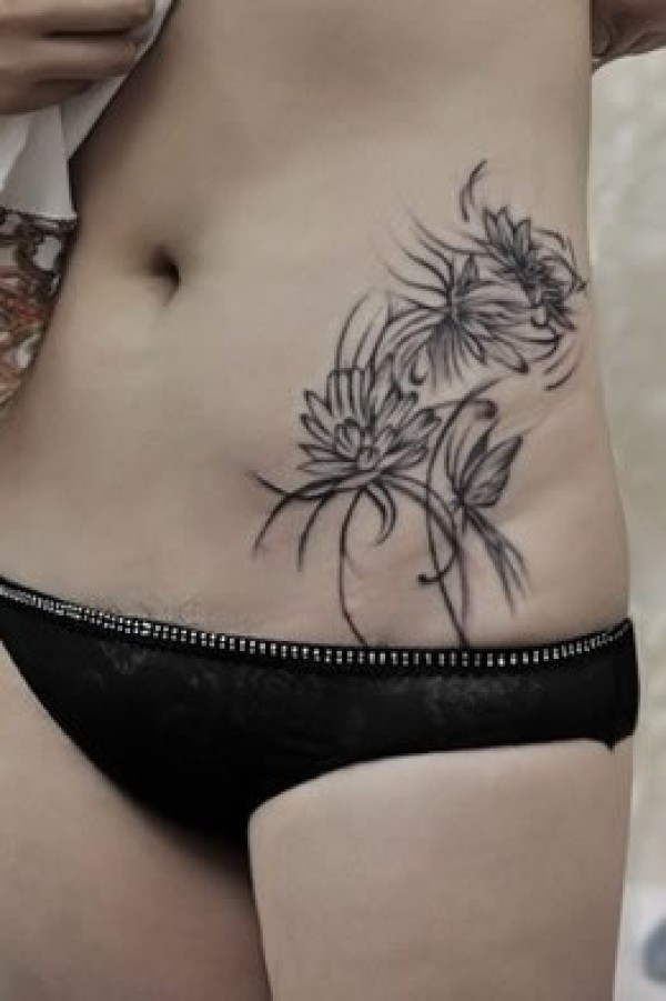 看到一款不错的腰部素色花朵纹身图案简单而朴_腰部纹身图案大全_纹身图吧
