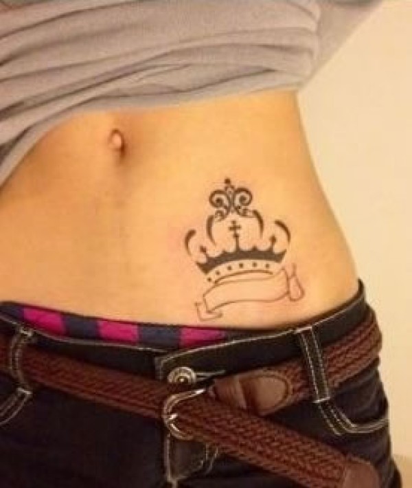 女生腰部的浅灰色皇冠图案纹身皇冠图腾纹身_腰部纹身图案大全_纹身图吧