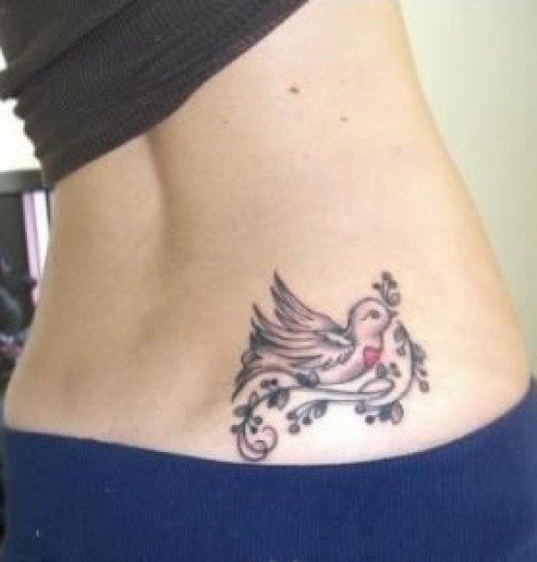 腰部衔着橄榄枝的和平鸽纹身略带色彩的和平鸽_腰部纹身图案大全_纹身图吧