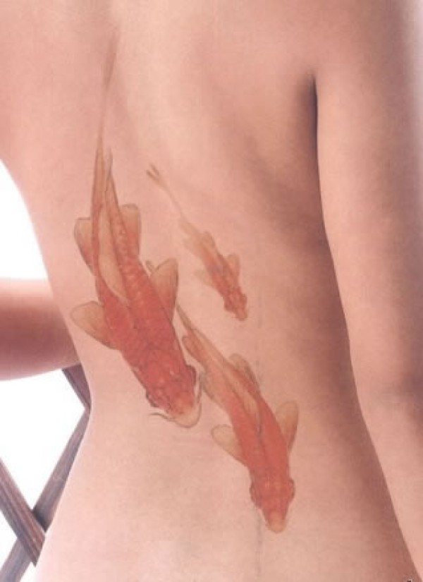 女生腰部红色鲤鱼纹身图非常正统的鲤鱼纹身图_腰部纹身图案大全_纹身图吧